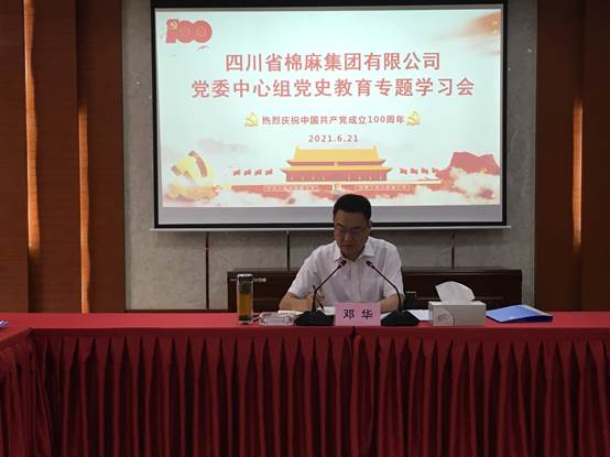 在小結(jié)講話中,鄧華要求,一是堅定制度自信,增強制度自覺。要堅定理想信念,永葆對黨絕對忠誠的政治品格;要樹立辯證史觀,正確看待社會主義革命和建設(shè)時期歷史;要牢牢把握規(guī)律,不斷強化走中國特色社會主義道路堅定決心;要賡續(xù)精神血脈,大力弘揚艱苦奮斗的創(chuàng)業(yè)精神。二是提高政治站位,扎實學(xué)習(xí)教育。無論集團層面,還是各黨支部、各部門、各子(分)公司都要根據(jù)省社黨組及集團公司黨委安排,高標(biāo)準(zhǔn)高質(zhì)量組織好“四史”學(xué)習(xí)教育。三是弘揚偉大精神,不斷“攢勁”聚力。要?從黨史中涵養(yǎng)“鋼少氣多骨頭硬”的精氣神,攢“拼勁”,勇于面對各種風(fēng)險挑戰(zhàn),著力破解各種制約發(fā)展的瓶頸和問題,奮力推進(jìn)各業(yè)務(wù)板塊高質(zhì)量發(fā)展;要從黨史中厚植“一枝一葉總關(guān)情”的為民情懷,攢“親勁”,各級黨員干部特別是班子成員,要主動帶頭深入基層一線,苦干實干,在項目、業(yè)務(wù)落地落實中出智出力解難題,在“我為群眾辦實事”實踐活動中為職工群眾謀福利;從黨史中弘揚“敢教日月?lián)Q新天”的奮斗精神,攢“干勁”,各級黨員干部要弘揚艱苦奮斗的精神,以夢為馬,以實干為鞭,立下硬決心、拿出硬舉措,敢挑最重的擔(dān)子,敢啃最硬的骨頭,敢接最燙的山芋,躍馬揚鞭,把“小我”融入到“大我”中,把青春融入到棉麻高質(zhì)量發(fā)展的進(jìn)程中,以不負(fù)韶華、不負(fù)時代的姿態(tài),在新征程的路上吹起想為、敢為、善為的擔(dān)當(dāng)實干之風(fēng)。